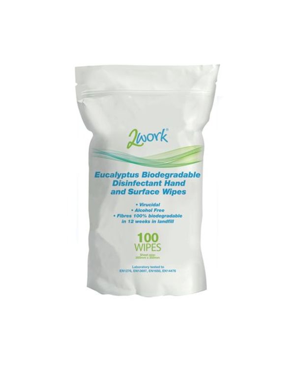 2Work Biodegradable Eucalyptus Hand/Surface Disinfectant Wipes (Pack of 100) 2W09161