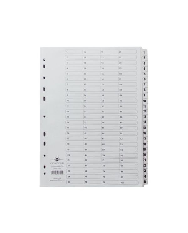 Concord Classic Index 1-100 A4 White Board Clear Mylar Tabs 05701/CS57