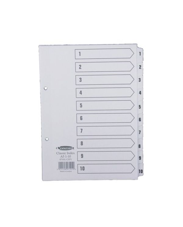Concord Reinforced Index 1-10 A5 White Board Mylar Tabs 07101/CS71