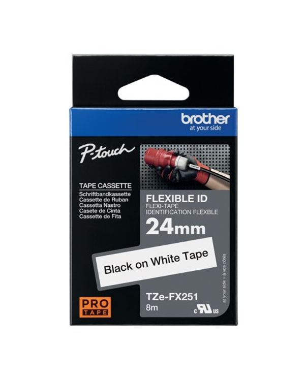 Brother P-Touch TZe Lam Tape Cassette 24mmx8m Black/White Flexible ID Labelling Tape TZEFX251