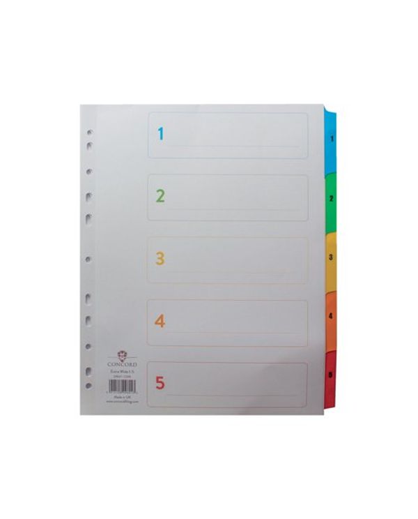 Concord Index 1-5 A4 Extra Wide Multicoloured Mylar Tabs 09601/CS96