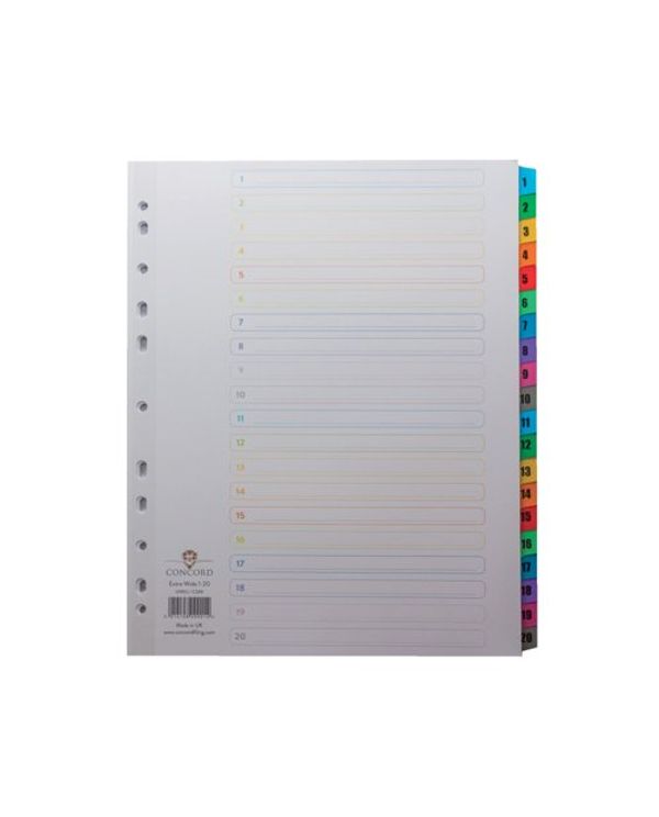 Concord Index 1-20 A4 Extra Wide Multicoloured Mylar Tabs 09901/CS99