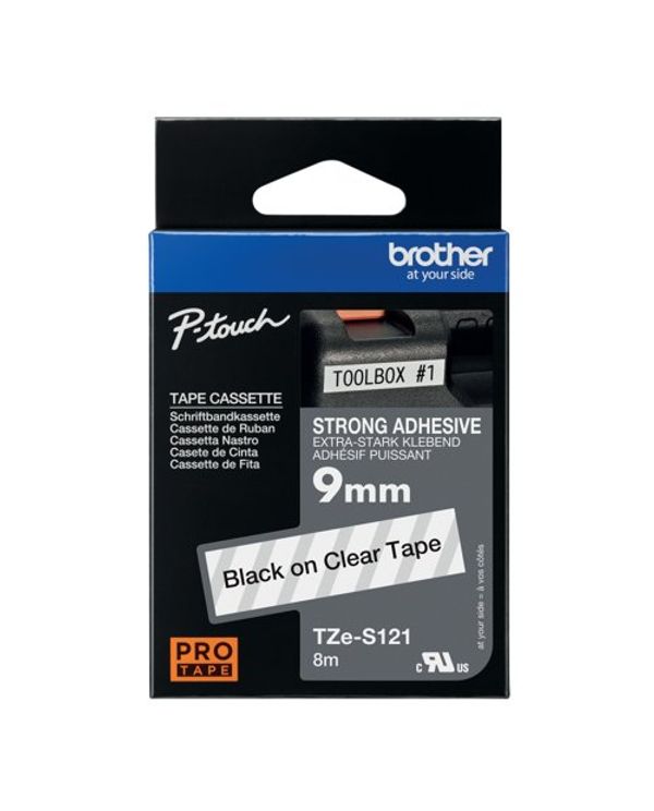 Brother P-Touch TZe Lam Tape Cassette 9mm x 8m Black on Clear Tape TZES121