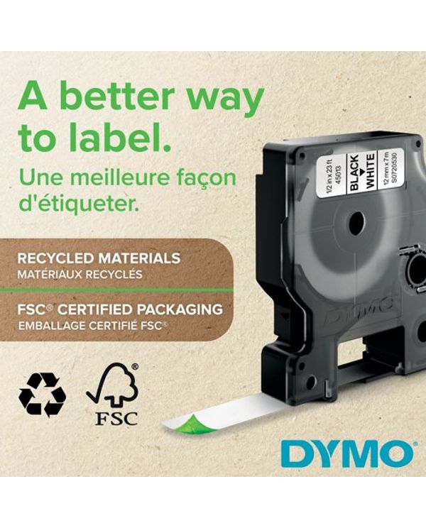 Dymo D1 LabelMaker Tape 12mmx7mm Black on White (Pack of 10) 2093097