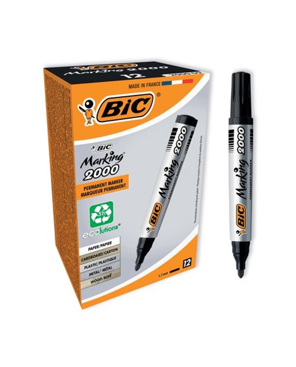 Bic 2000 Permanent Marker Bullet Tip Black (Pack of 12) 820915