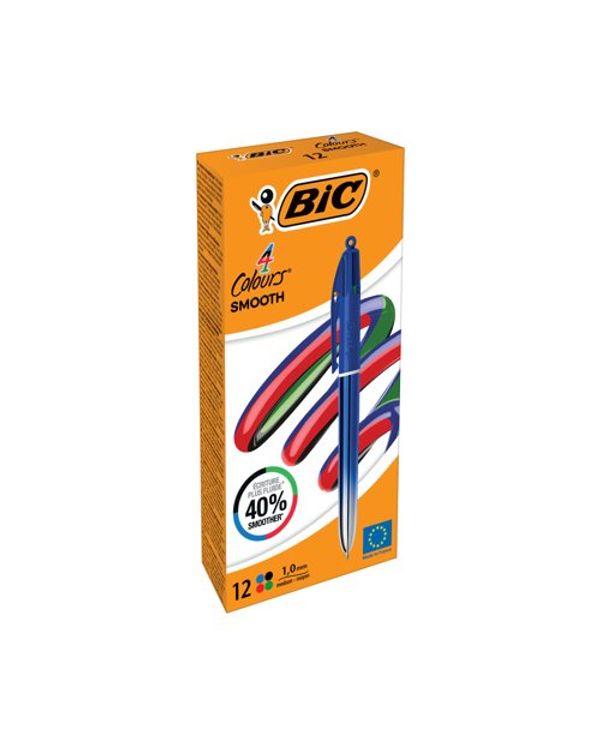Bic 4 Colours Pro Ballpoint Pen Blue Barrel Medium (Pack of 12) 524091
