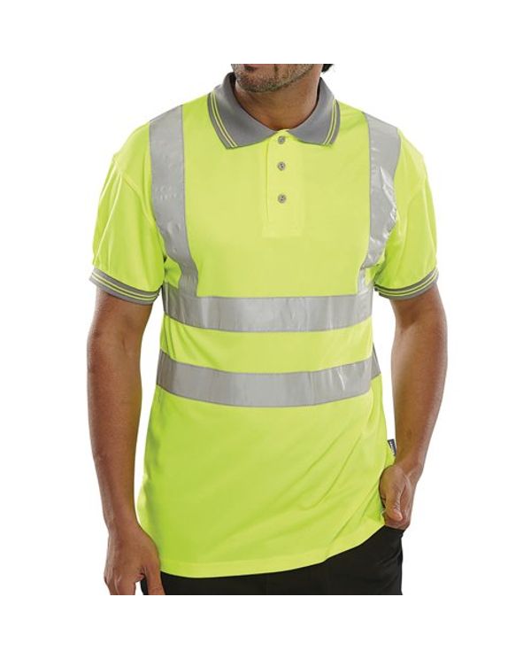 Beeswift High Visibility Short Sleeve Polo Shirt Saturn Yellow L BPKSENSYL
