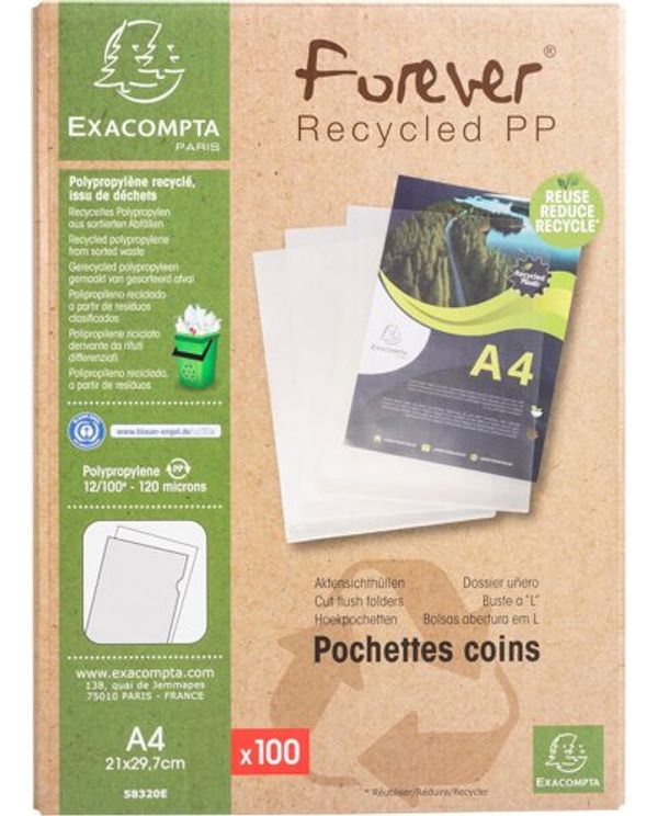 Exacompta Forever Recycled Polypropylene Cut Flush Folders A4 120 Micron PK100 - 58320E