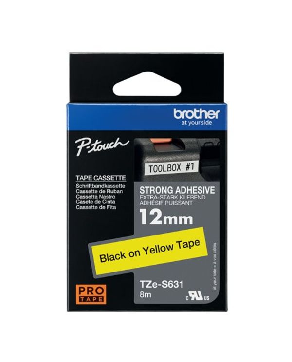 Brother P-Touch TZe Lam Tape Cassette 12mm x 8m Black On Yellow Tape TZES631