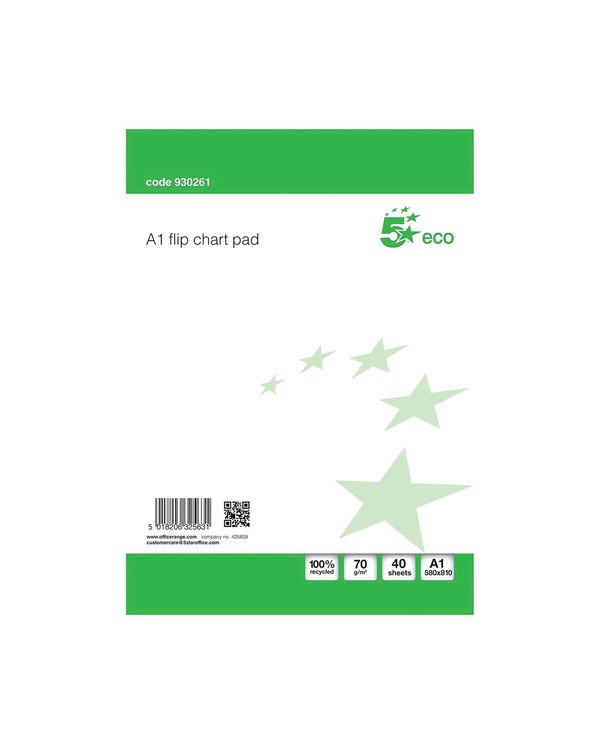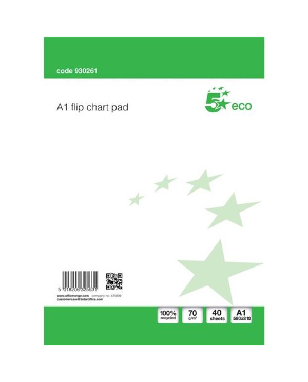 5 Star Eco Recycled Flipchart Pad Perforated 40 Sheets A1 Green/White (Pack of 5)