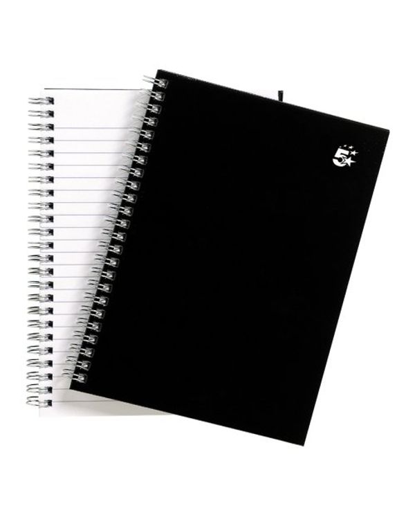5 Star Office Notebook Wirebound 80gsm Ruled 140pp A5 Black (Pack of 5)