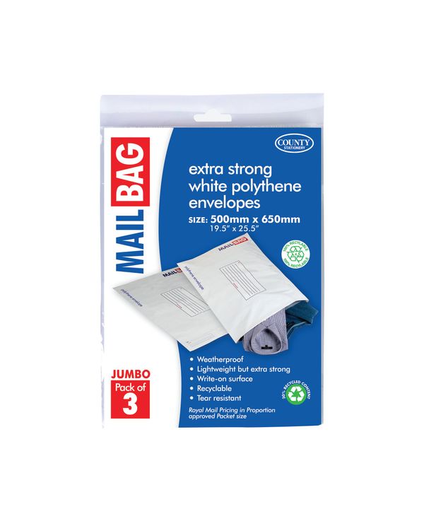 County Stationery Mail Bag Polythene Envelopes x3 White Jumbo 500x650mm (Pack of 10) C263