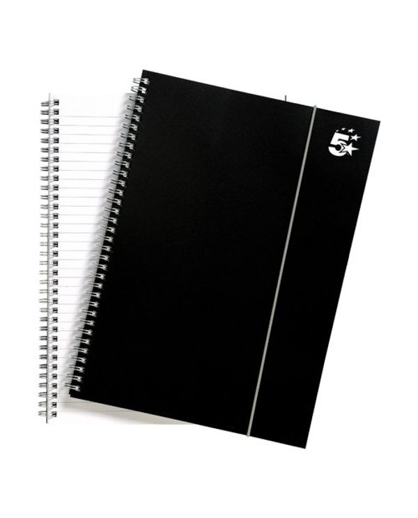 5 Star Office Notebook Wirebound Polypropylene 80gsm Ruled 160pp A4 Black (Pack of 6)