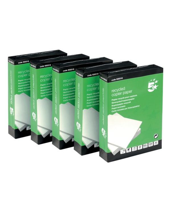 5 Star A4 Copier Paper Recycled 80gsm White Ream-Wrapped (Pack of 2500) 930318