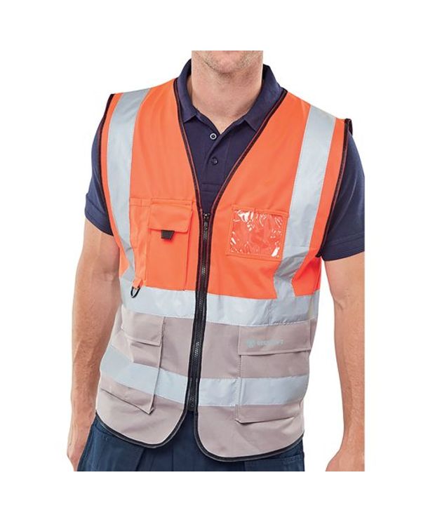 Beeswift High Visibility Two Tone Executive Waistcoat Red/Grey S HVWCTTREGYS
