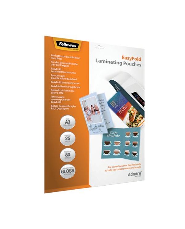Fellowes Admire EasyFold Laminating Pouch A3 160 Micron Total Thickness (Pack of 25) 5602001