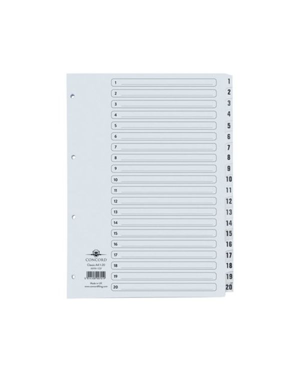 Concord Classic Index 1-20 A4 White Board With Clear Mylar Tabs 00701/CS7