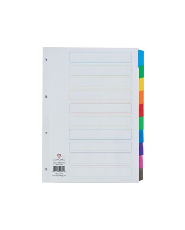 Concord Reinforced Divider 10-Part A4 Multicoloured Tabs 00801/CS8