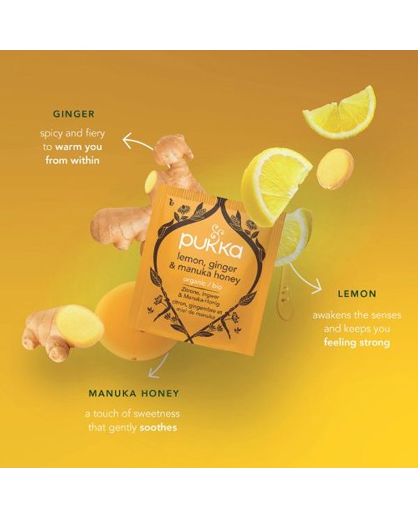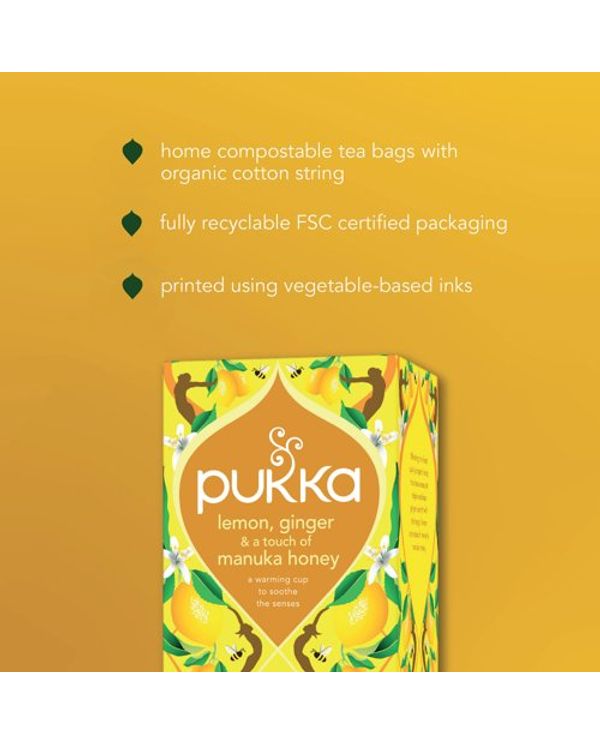 Pukka Organic Lemon Ginger and a Touch of Manuka Honey Tea Bags (Pack of 20) 801543