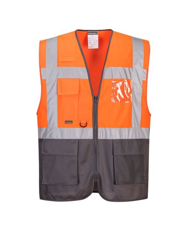 Portwest Warsaw Hi Vis Contrast Executive Vest 3XL Orange/Gry (Pack of 10)
