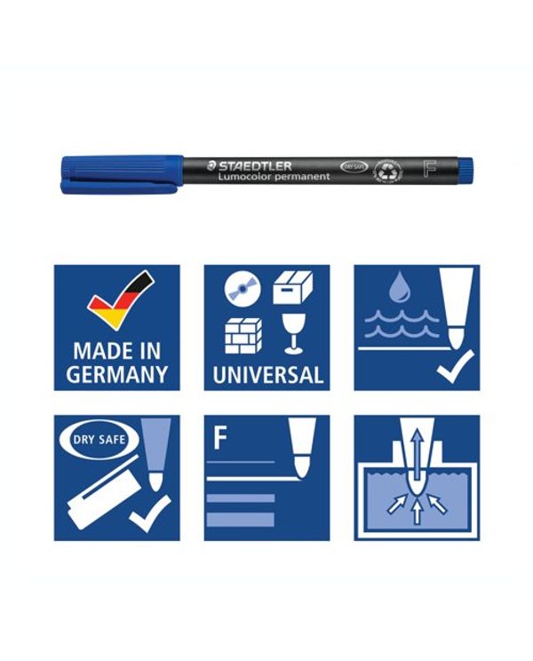 Staedtler Lumocolour Pen Permanent Fine Blue (Pack of 10) 318-3