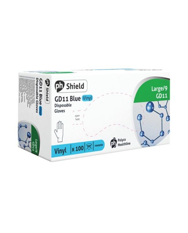 Shield Powdered Vinyl Gloves Latex Free Large Blue (Pack of 100) GD11-L