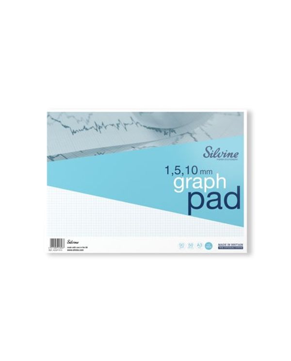 Silvine Graph Pad 1/5/10mm 50 Sheets A3 A3GP1510