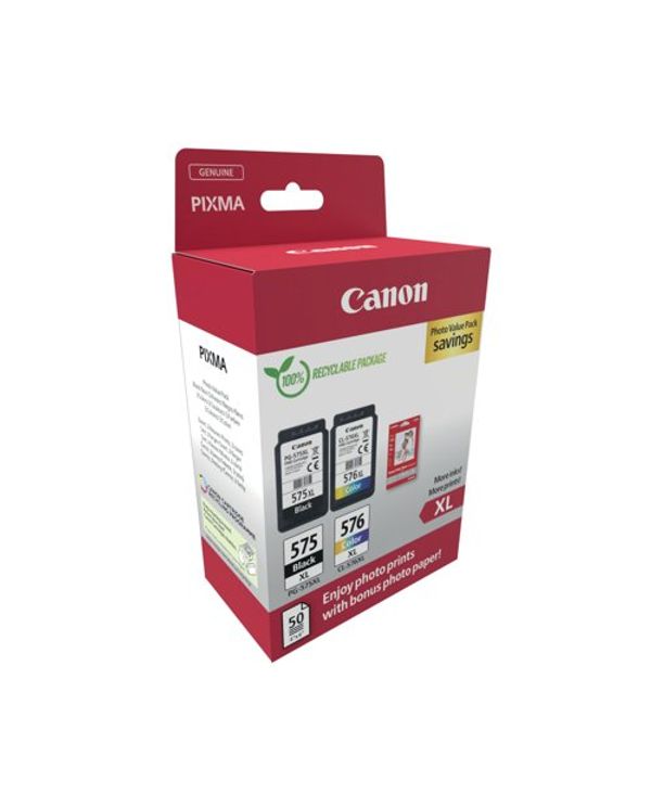 Canon PG-575XL/CL-576XL Ink Cartridges High Yield K/CMY + 4 x 6 in Photo Paper Value Pack 5437C006