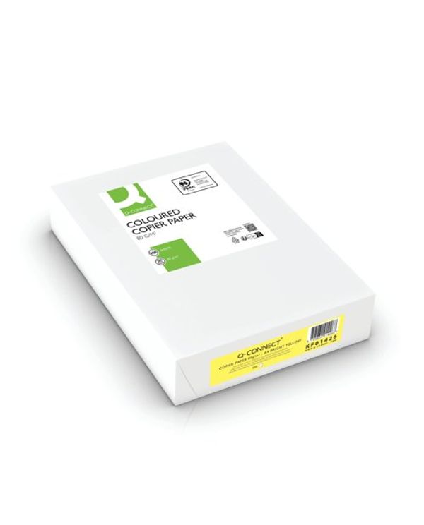 Q-Connect Bright Yellow Coloured A4 Copier Paper 80gsm Ream (Pack of 500) KF01426