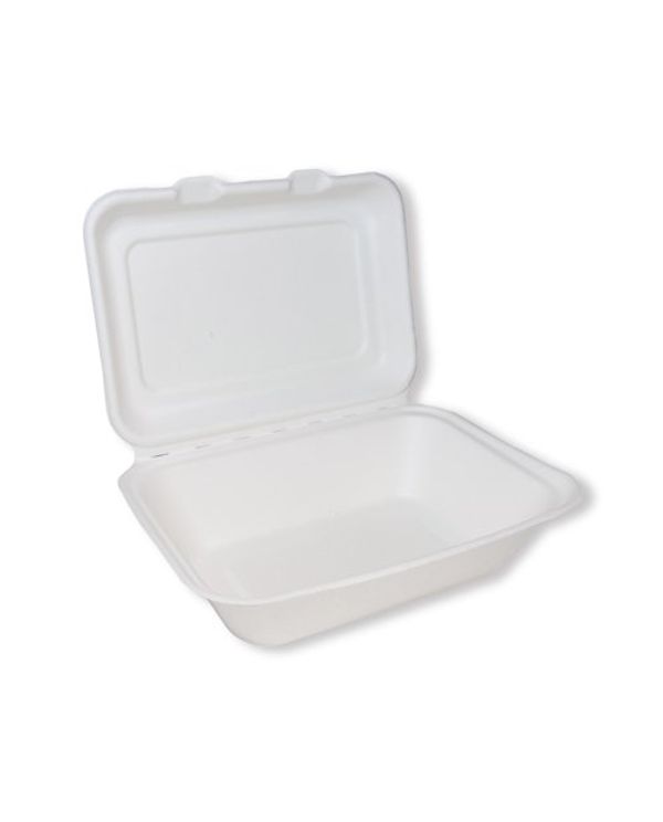 Go-Pak Bagasse Clamshell Meal Box Regular 7x5 Inch White (Pack of 500) D06002