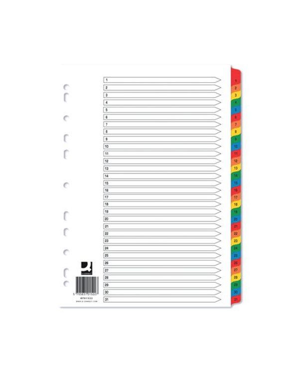Q-Connect 1-31 Index Multi-punched Reinforced Board Multi-Colour Numbered Tabs A4 White KF01522