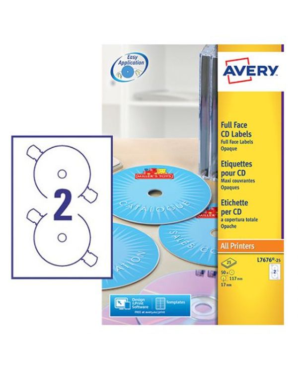 Avery White Full Face CD DVD Laser Label 2 Per Sheet (Pack of 50) L7676-25