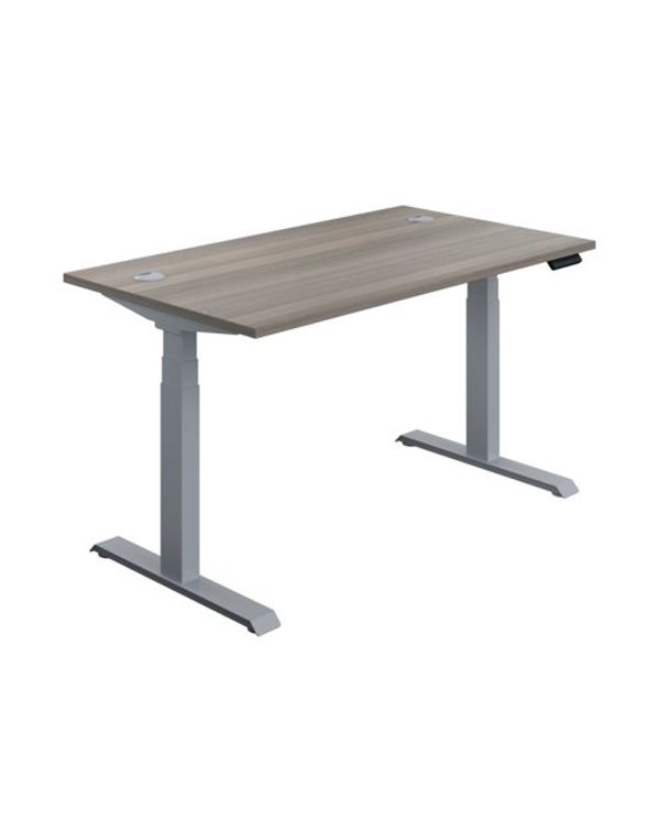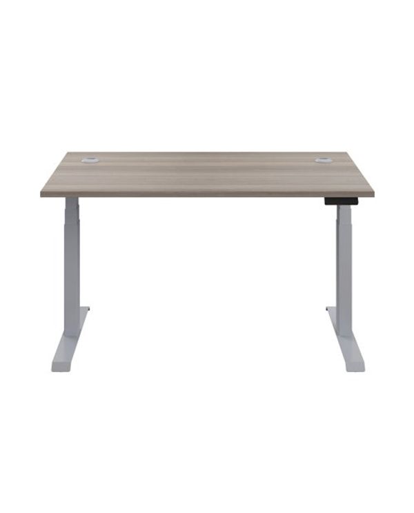 Jemini Sit/Stand Desk with Cable Ports 1200x800x630-1290mm Grey Oak/Silver KF809708
