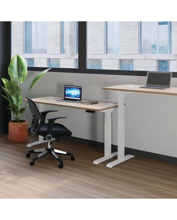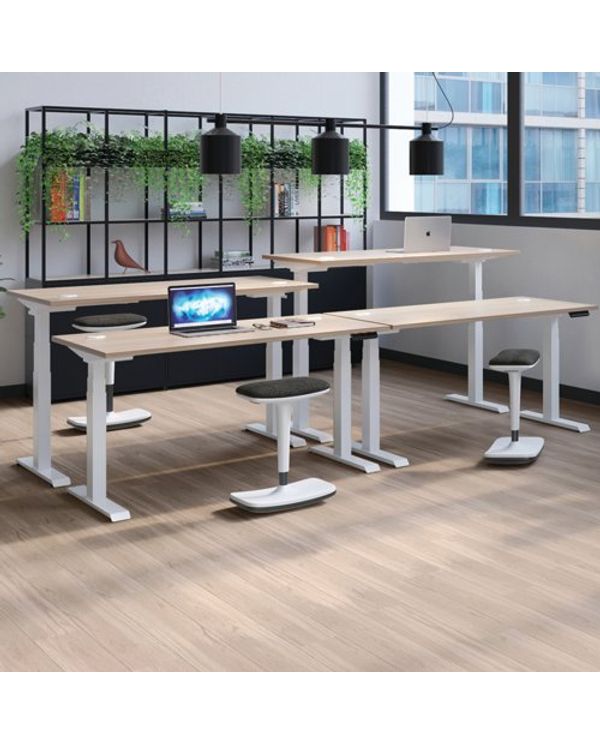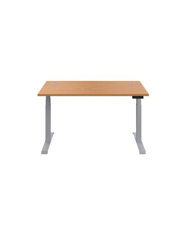 Jemini Sit/Stand Desk with Cable Ports 1200x800x630-1290mm Nova Oak/Silver KF809722