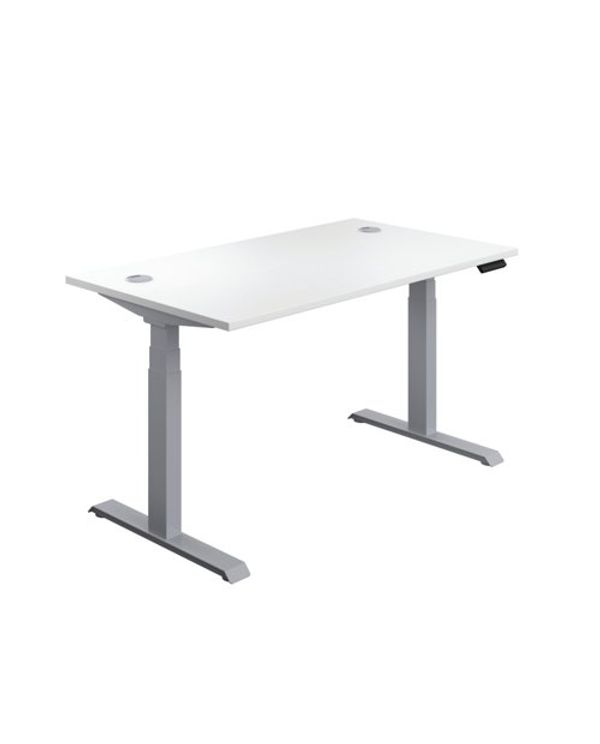 Jemini Sit/Stand Desk with Cable Ports 1200x800x630-1290mm White/Silver KF809739