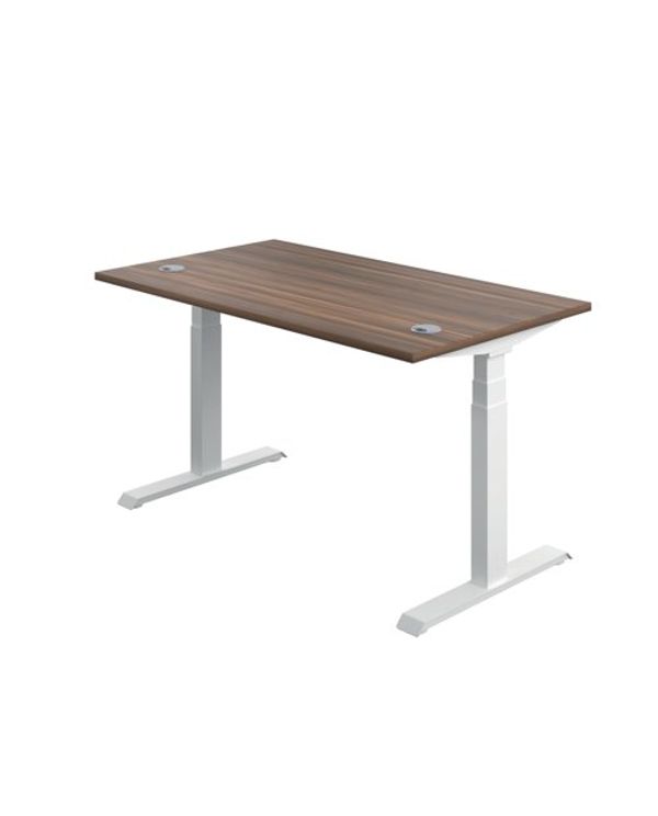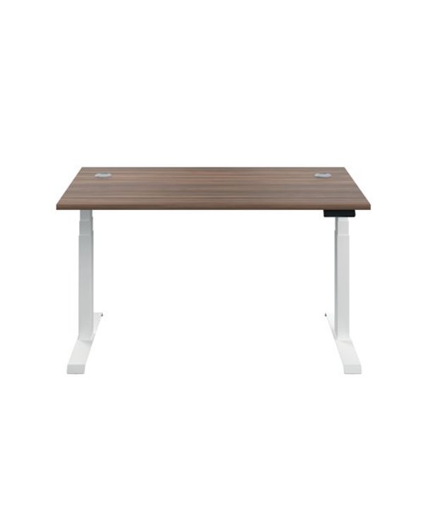 Jemini Sit/Stand Desk with Cable Ports 1200x800x630-1290mm Dark Walnut/White KF809753