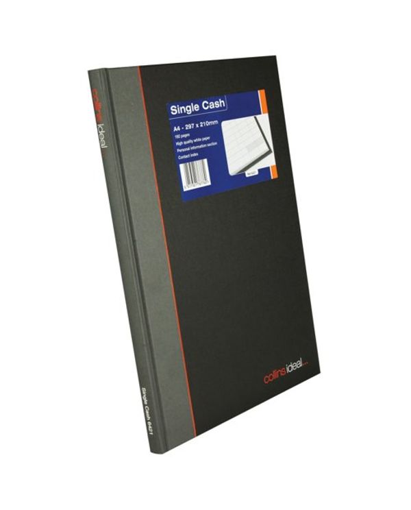 Ideal A4 Cashbook Casebound Single Cash 192 Pages Black 6421