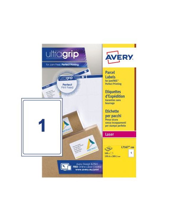 Avery Ultragrip Laser Parcel Labels 199.6 x 289.1mm 1 Per Sheet White (Pack of 500) L7167-500