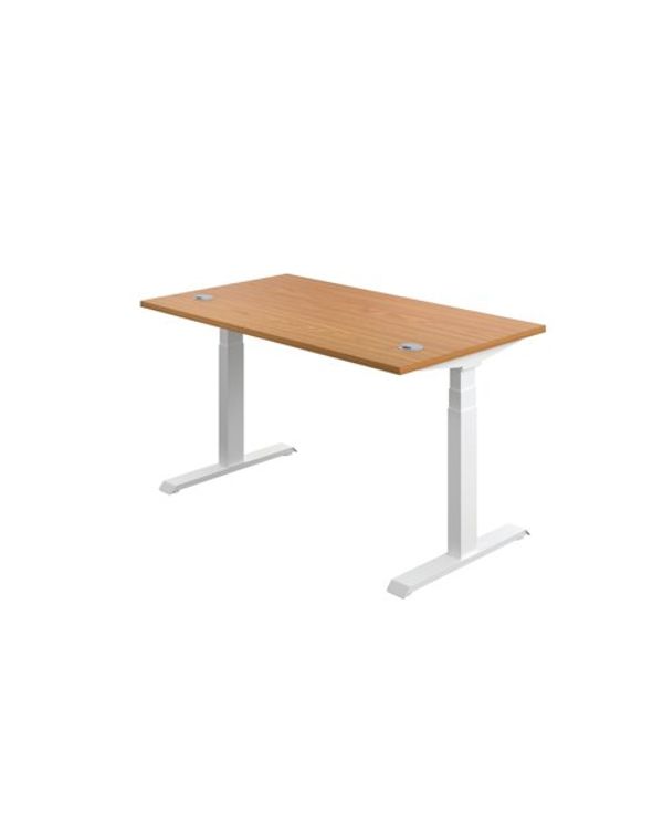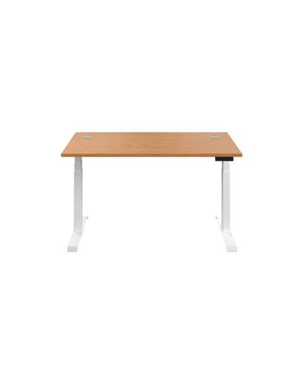 Jemini Sit/Stand Desk with Cable Ports 1200x800x630-1290mm Nova Oak/White KF809784