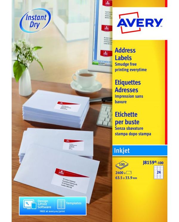 Avery Inkjet Address Labels QuickDRY 63.5x33.9mm 24 Per Sheet White (Pack of 2400) J8159-100