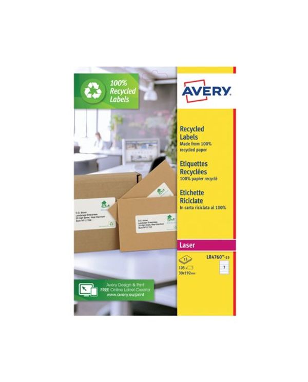 Avery Recycled Ring Binder Label 7/Sheet White (Pack of 105) LR4760-15