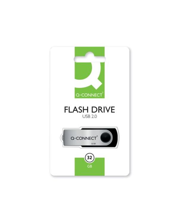 Q-Connect USB 2.0 Swivel 32GB Flash Drive Silver/Black KF76970