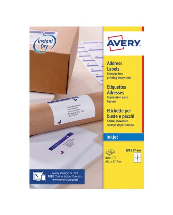 Avery Inkjet Label 99.1x67.7mm 8 Per Sheet White (Pack of 800) J8165-100