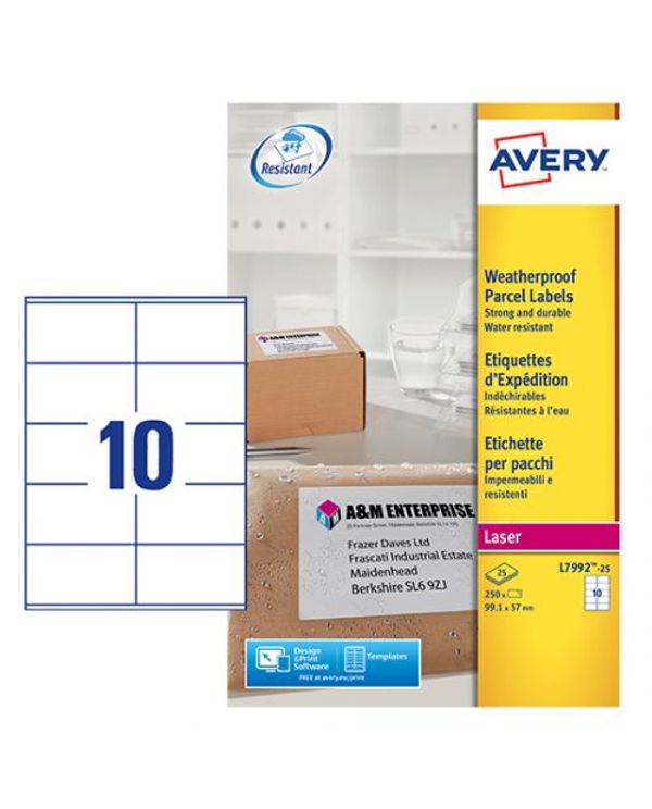 Avery Weatherproof Shipping Label 10 Per Sheet (Pack of 250) L7992-25