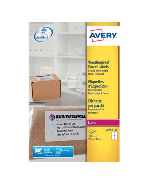 Avery Weatherproof Shipping Label 4 Per Sheet (Pack of 100) L7994-25