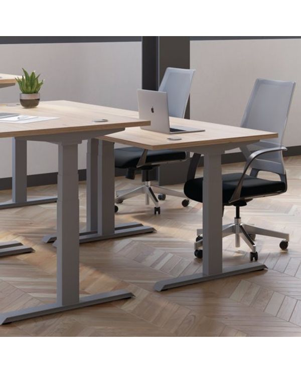 Jemini Sit/Stand Desk with Cable Ports 1400x800x630-1290mm Beech/White KF809869