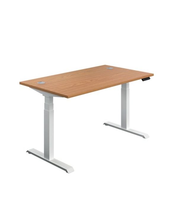 Jemini Sit/Stand Desk with Cable Ports 1400x800x630-1290mm Nova Oak/White KF809906
