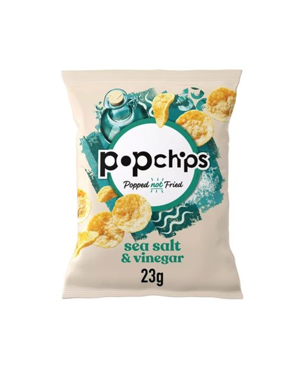 Popchips Sea Salt and Vinegar Crisps 23g (Pack of 24) 701431