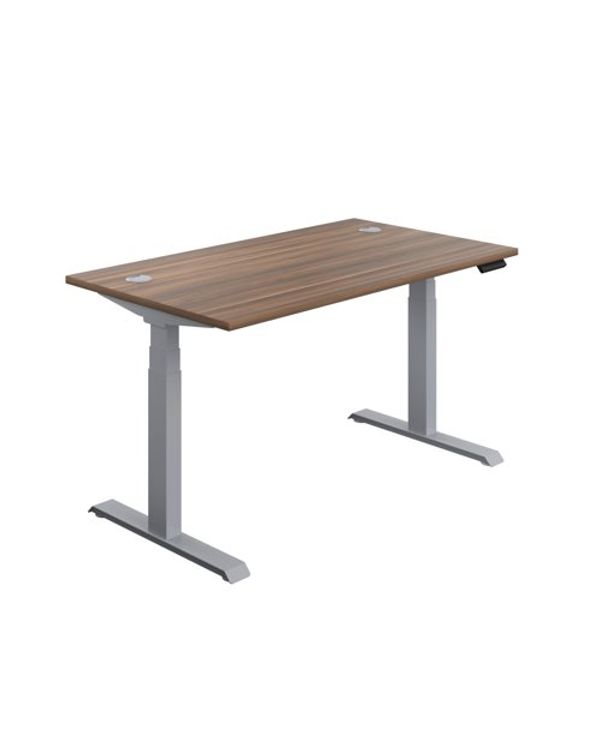 Jemini Sit/Stand Desk with Cable Ports 1600x800x630-1290mm Dark Walnut/Silver KF809937