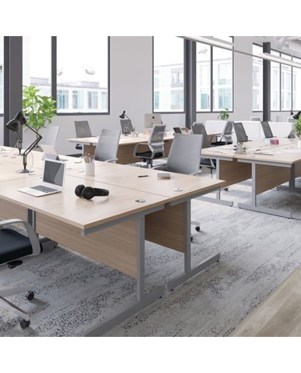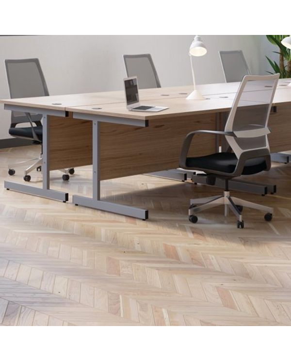 Jemini Single Rectangular Desk 1400x600x730mm Grey Oak/Silver KF800537